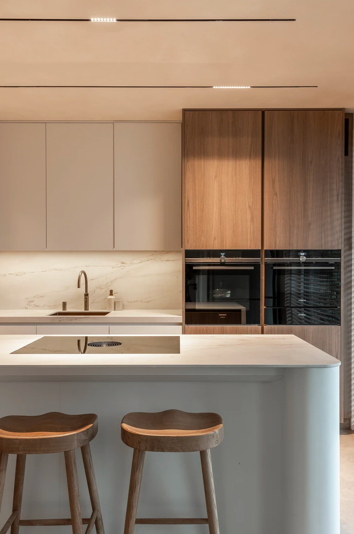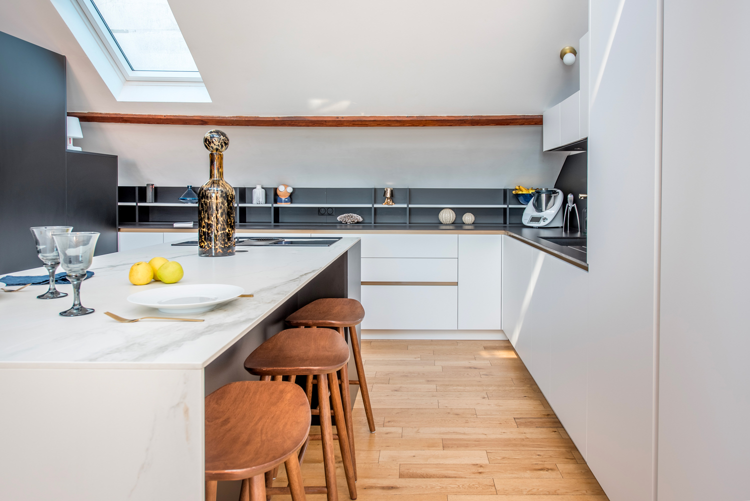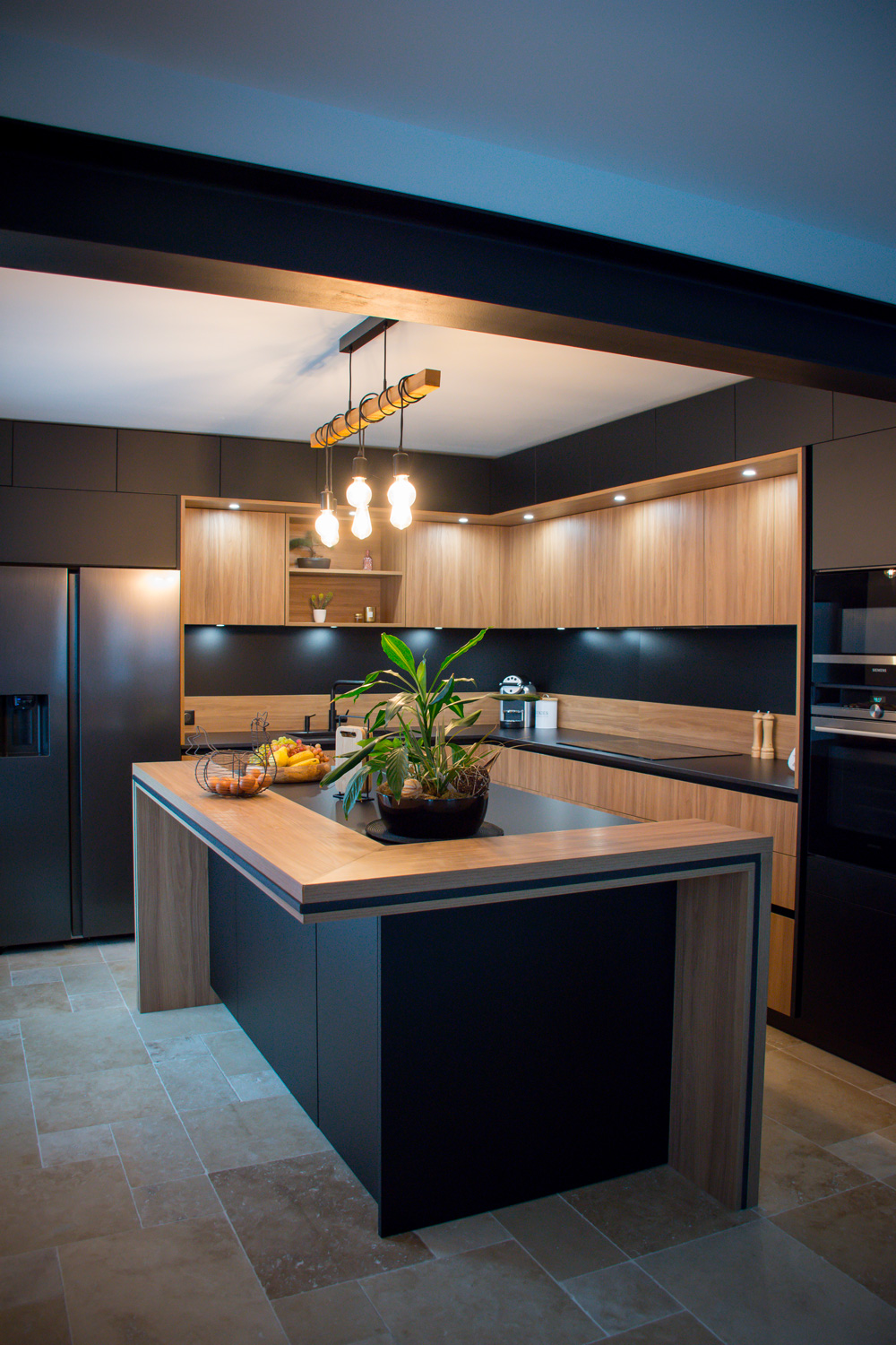 Le bois peut être intégré de manière subtile à travers le plan de travail et des éléments décoratifs, ou de façon plus marquée en choisissant un mobilier partiel ou entièrement en bois.